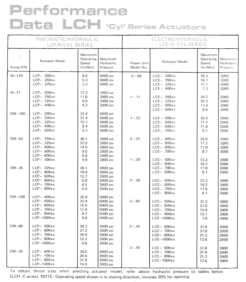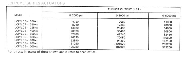 Operating from a Central Hydraulic System or from remotely located powerpack. Pressure ranges up to 5000 psi. Thrust and speed control, limit switch pack and motion control are all identical to those employed on the LCP/H and LCE/H 'C' Series actuators.