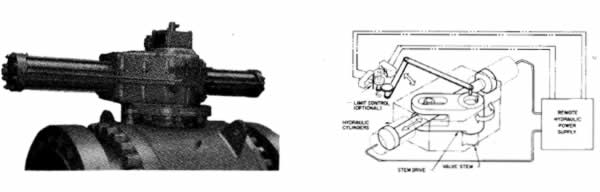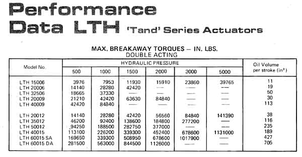 Direct Hydraulic (L TH) 'T' Series Actuator. Operating from a central hydraulic system or from a remotely located power pack. Standard pressure range up to 2000 psi. High pressure range up to 5000 psi.